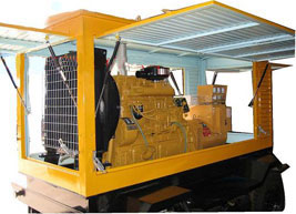 双塔柴油发电机组/移动柴油发电机组设计独具创新,机动性高、重心低、制动安全、制造精良、外形美观。 双塔拖车车架采用槽梁焊接成框架结构,节点选择合理、强度高、刚性好;同时装有钢板弹簧悬架结构;拖车采用高度可调节插销式牵引架,适用于各种高度牵引车;采用圆形钢管焊接直通式车轴,结构紧凑,安全可靠;车架四角设有机械式支撑装置,配备惯性行车制动、驻车制动和脱离应急制动,确保机组在各种状况下的安全;车架前端设有支撑轮,具备承受机组垂直载荷的功能的同时还具备导向功能;整车配备转向和刹车指示灯,同时装有尾灯标准插头